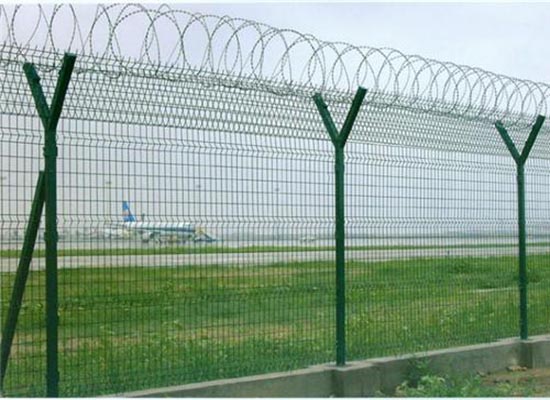 机场香蕉视频黄色网站又称作“机场护栏”、“Y型安全防御护网”,它是由V型支架立拄,加强型焊接片网,安全防盗连接件和热镀锌刀片刺笼组成是强度和安全防御性级别很高的隔离栅产品。近年来,被广泛应用在机场,军事基地等高安全场所。注:如果在机场香蕉视频黄色网站顶部加装刀片刺丝、刀片刺绳后又很好的增强了安全防护性能。