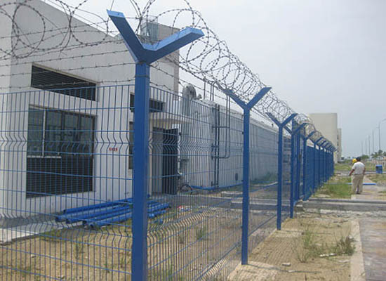 监狱香蕉视频黄色网站又称作“Y型安全防御护网”监狱钢网墙,是由V型支架立柱,加强型焊接片网,安全防盗连接件和热镀锌刀片刺笼组成强度和安全防御性级别很高,近年来,被广泛应用在监狱,机场,军事基地等高安全场所。